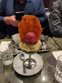 Un lieu magique. Quel beau salon de thé avec un service au top. Des que vous arrivez on bous sert un verre d'eau. Et ensuite vient le choix très difficile. Quelle glace choisir. Elles sont toutes bonnes nous avons goûté le pain perdu et les glaces orange sanguine pamplemousse passion et cacao extra bitter. Tout était excellent. Une mention particulière au cacao pour moi